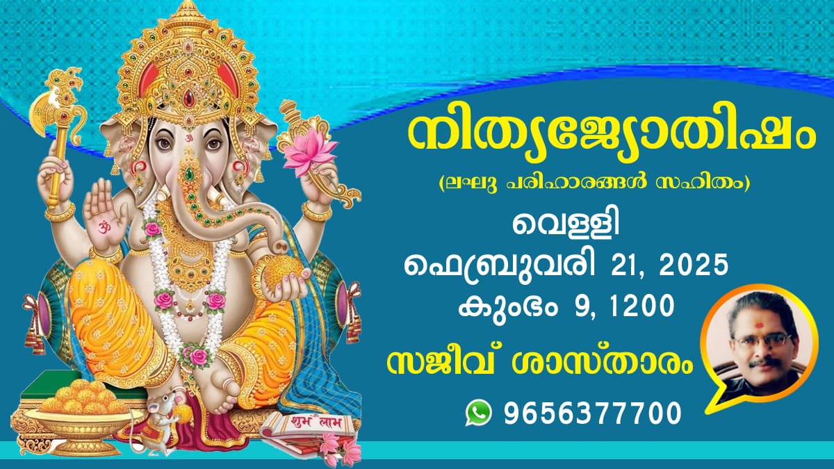 (നിത്യജ്യോതിഷം എന്നും ലഭിക്കാൻ riyoceline.com/projects/Neram/ സന്ദർശിക്കുക. അല്ലെങ്കിൽ ഗൂഗിൾ പ്ലേസ്റ്റോറിൽ നിന്നും AstroG App ഡൗൺലോഡ് ചെയ്യുക. നേരം ഓൺ ലൈൻ ഇപ്പോള് വാട്സ്ആപ്പിലും ലഭ്യമാണ്. ഏറ്റവും പുതിയ വിശേഷങ്ങൾക്കായി ക്ലിക്ക് ചെയ്യൂ : riyoceline.com/projects/Neram/ )