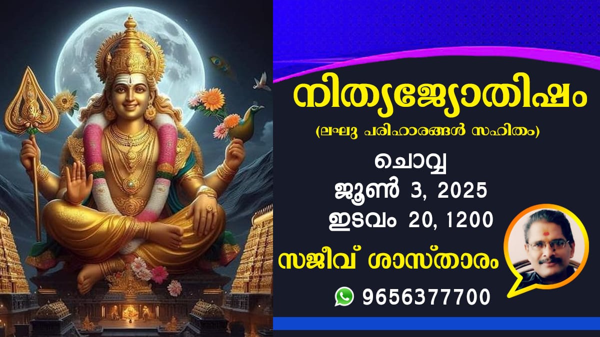 (നിത്യജ്യോതിഷം എന്നും ലഭിക്കാൻ riyoceline.com/projects/Neram/ സന്ദർശിക്കുക. അല്ലെങ്കിൽ ഗൂഗിൾ പ്ലേസ്റ്റോറിൽ നിന്നും AstroG App ഡൗൺലോഡ് ചെയ്യുക.)