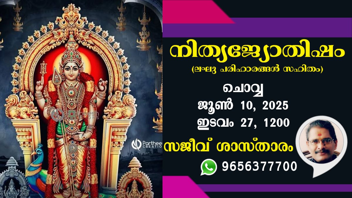 (നിത്യജ്യോതിഷം എന്നും ലഭിക്കാൻ riyoceline.com/projects/Neram/ സന്ദർശിക്കുക. അല്ലെങ്കിൽ ഗൂഗിൾ പ്ലേസ്റ്റോറിൽ നിന്നും AstroG App ഡൗൺലോഡ് ചെയ്യുക.)