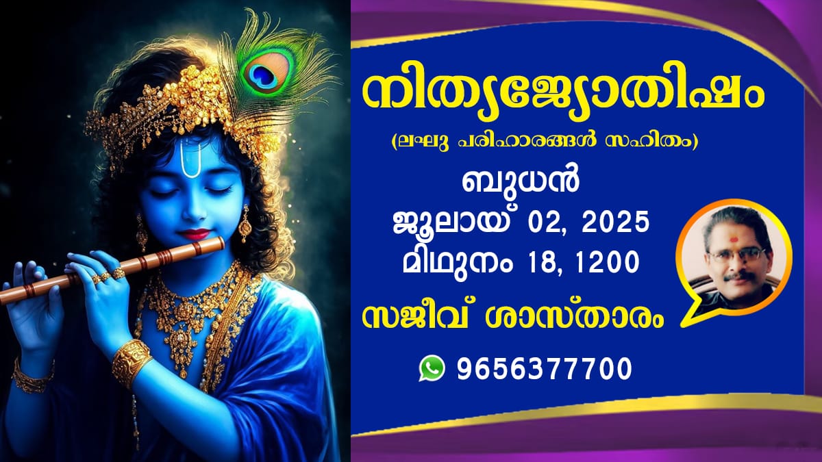 (നിത്യജ്യോതിഷം എന്നും ലഭിക്കാൻ riyoceline.com/projects/Neram/ സന്ദർശിക്കുക. അല്ലെങ്കിൽ ഗൂഗിൾ പ്ലേസ്റ്റോറിൽ നിന്നും AstroG App ഡൗൺലോഡ് ചെയ്യുക.)