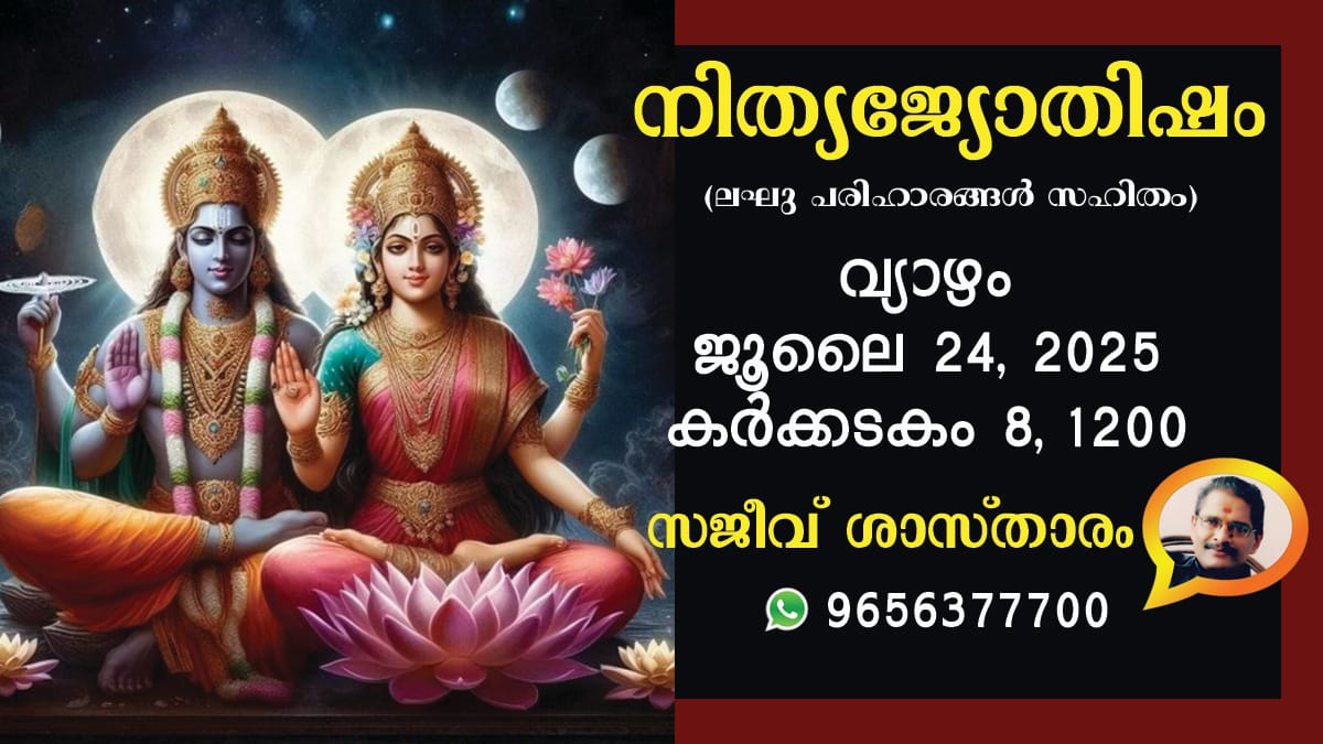 ഇന്ന് വ്യാഴാഴ്ച. ജനനസമയത്ത് വ്യാഴത്തിന് നീചം, മൗഢ്യം, ദുർബ്ബല ക്ഷേത്ര സ്ഥിതി എന്നിവയുള്ളവർ, വലിയ സാമ്പത്തിക ബാദ്ധ്യതയുള്ളവർ,