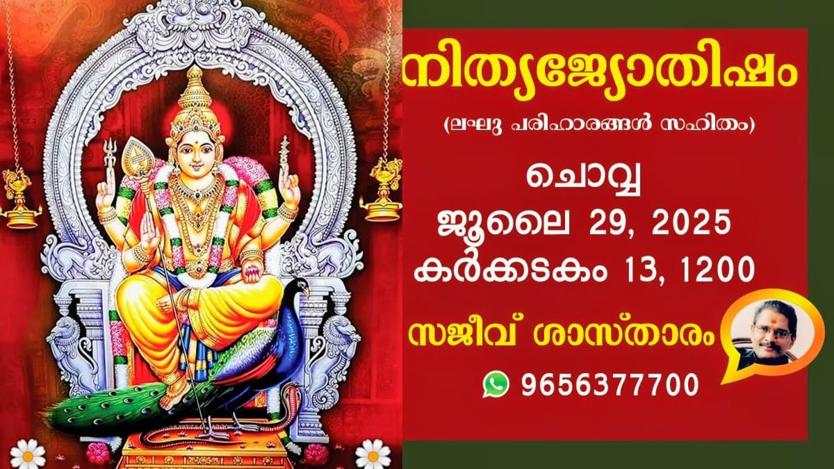 ഇന്നത്തെ ശ്രാദ്ധം ആചരിക്കേണ്ട നക്ഷത്രം: ഉത്രം തിഥി: ശുക്ലപക്ഷപഞ്ചമി