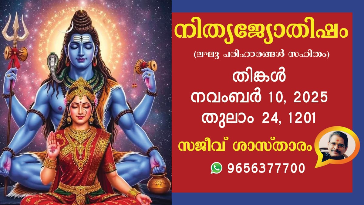 ഇന്ന് തിങ്കളാഴ്ച. ജനനസമയത്ത് ചന്ദ്രന് നീചം, മൗഢ്യം, ദുർബ്ബല ക്ഷേത്ര സ്ഥിതി എന്നിവയുള്ളവർ, ചന്ദ്രന്റെ ദശാപഹാര ഛിദ്രങ്ങളിൽ കഴിയുന്നവർ, മാതൃദോഷമുള്ളവർ, കടുത്ത