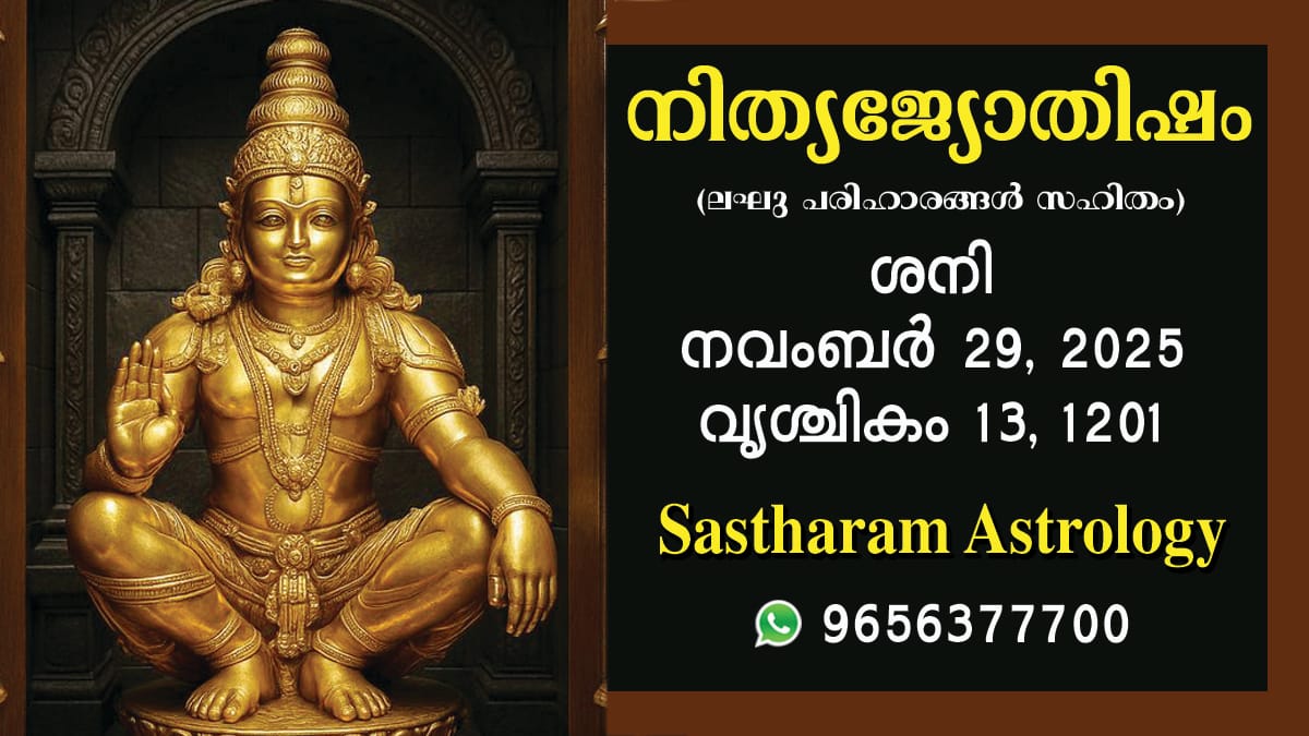(നേരം ഓൺ ലൈൻ ഇപ്പോള് വാട്സ്ആപ്പിലും ലഭ്യമാണ്. ഏറ്റവും പുതിയ വിശേഷങ്ങൾക്കായി ക്ലിക്ക് ചെയ്യൂ : NeramOnline.com . നേരം ഓൺലൈനിൻ പ്രസിദ്ധീകരിക്കാൻ ലേഖനങ്ങൾ, ചിത്രങ്ങൾ, വീഡിയോകൾ അയയ്ക്കേണ്ട വാട്സ്ആപ്പ് നമ്പർ : + 91 81380 15500 . ആത്മീയ വിശേഷങ്ങളും ജ്യോതിഷ പ്രവചനങ്ങളും സംബന്ധിച്ച വാര്ത്തകള് അപ്പപ്പോള് ലഭിക്കാന്, അസ്ട്രോ ജി, നേരം ഓൺലൈൻ ആപ് ഡൗണ്ലോഡ് ചെയ്യുക : AstroG App . )