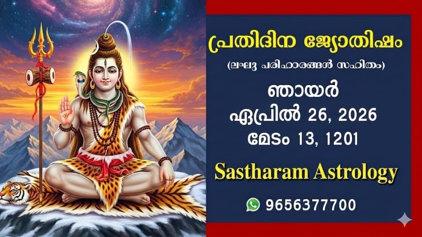 (നേരം ഓൺ ലൈൻ വാട്സ്ആപ്പിലും ലഭിക്കും : NeramOnline.com . നേരം ഓൺലൈനിൻ പ്രസിദ്ധീകരിക്കാൻ ലേഖനങ്ങൾ, ചിത്രങ്ങൾ, വീഡിയോകൾ അയയ്ക്കേണ്ട വാട്സ്ആപ്പ് നമ്പർ : + 91 81380 15500 . ആത്മീയ- ജ്യോതിഷ വാര്ത്തകള്ക്ക്, അസ്ട്രോ ജി, നേരം ഓൺലൈൻ ആപ് ഡൗണ്ലോഡ് ചെയ്യുക: AstroG App .)
