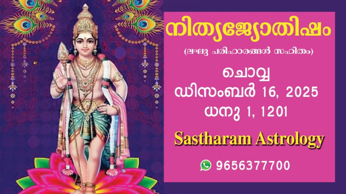 2025 ഡിസംബർ 16, ചൊവ്വ കലിദിനം 1872560 കൊല്ലവർഷം 1201 ധനു 01