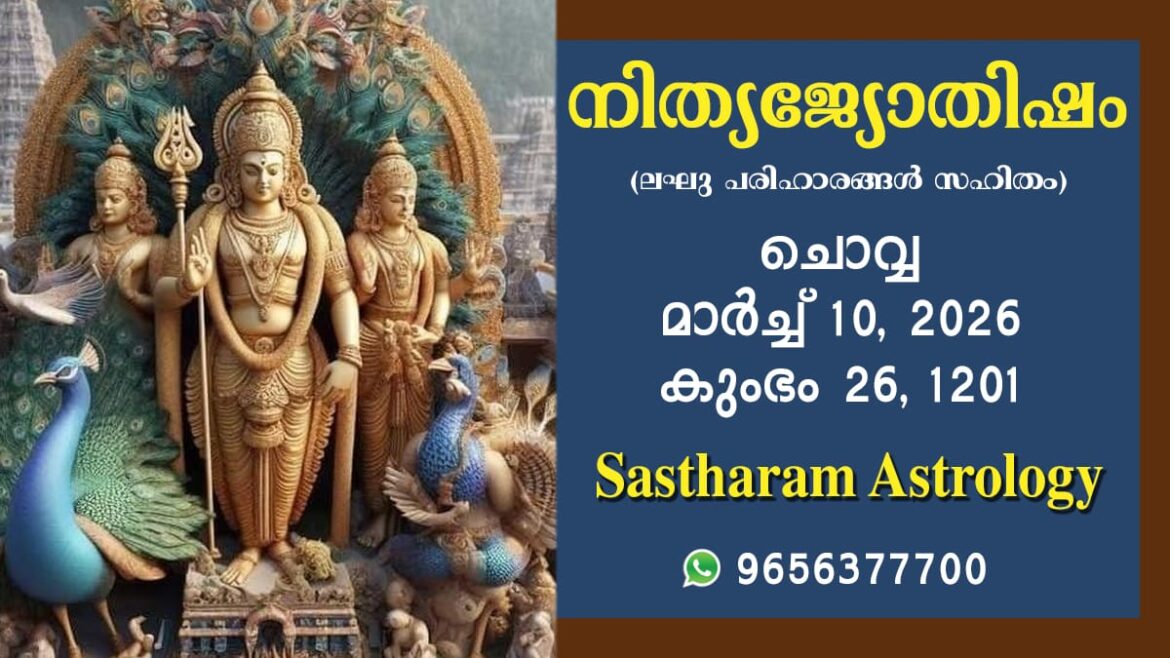 2026 മാർച്ച് 10, ചൊവ്വ കലിദിനം 1872644 കൊല്ലവർഷം 1201 കുംഭം 26