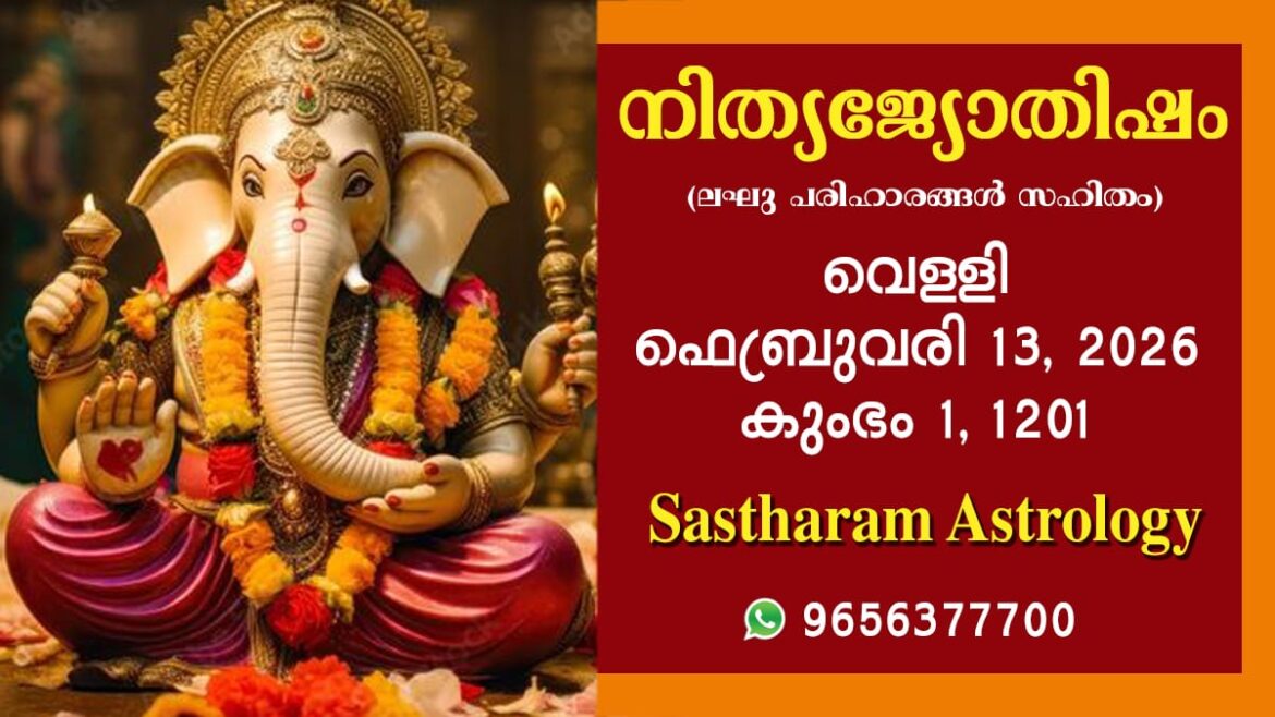 2025 ഫെബ്രുവരി 13, വെള്ളി കലിദിനം 1872619 കൊല്ലവർഷം 1201 കുംഭം 01