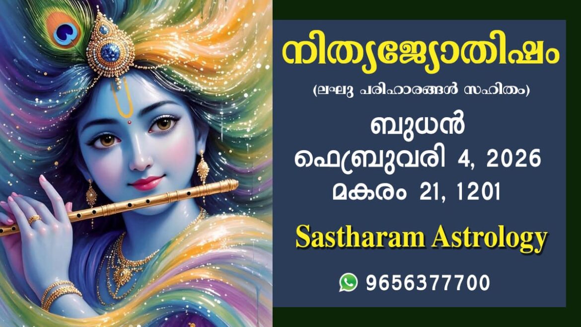 മേടം മുതൽ മീനം വരെ 12 കൂറുകളുടെയും ഇന്നത്തെ രാശി ഫലം | 2026 ഫെബ്രുവരി 4, ബുധൻ