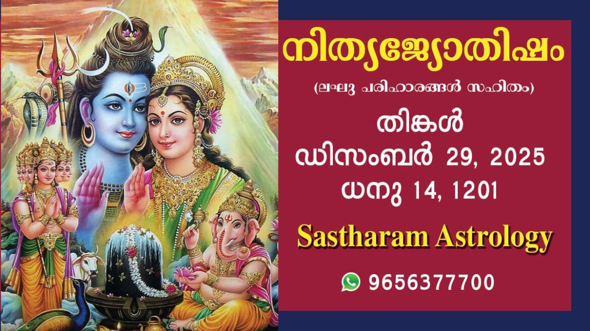 2025 ഡിസംബർ 29, തിങ്കൾ കലിദിനം1872573 കൊല്ലവർഷം 1201 ധനു 14