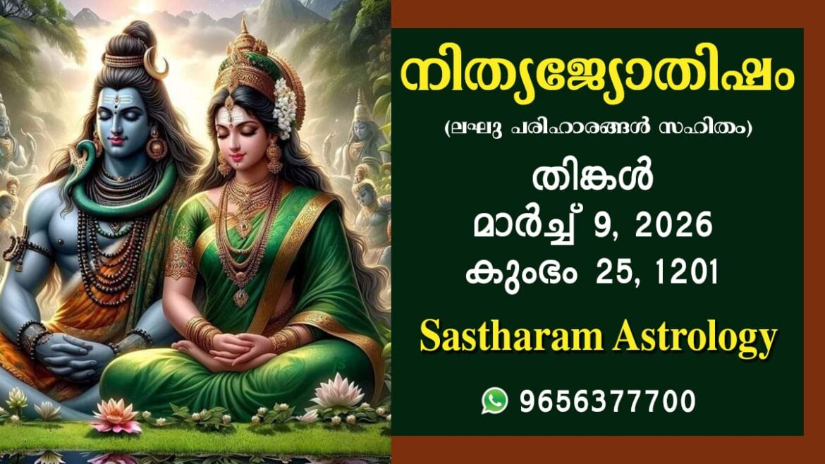 മേടം മുതൽ മീനം വരെ 12 കൂറുകളുടെയും ഇന്നത്തെ രാശി ഫലം | 2026 മാർച്ച് 9, തിങ്കൾ