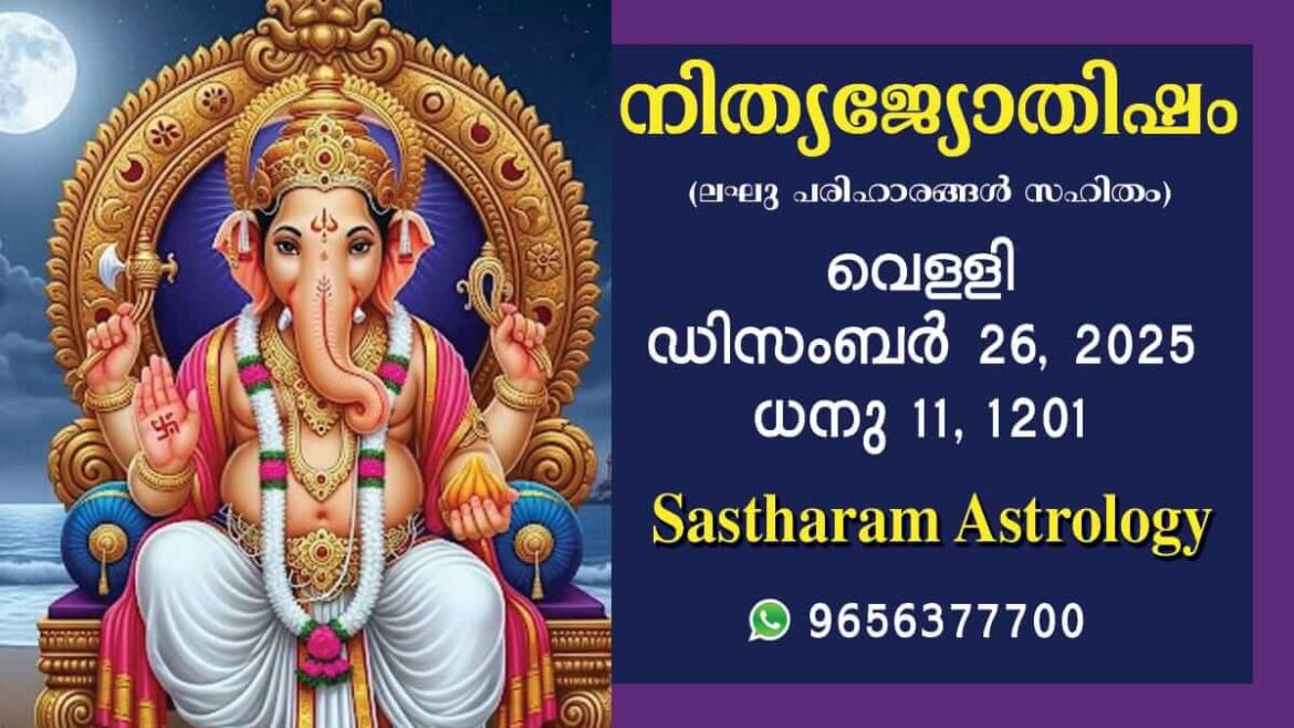 2025 ഡിസംബർ 26, വെള്ളി കലിദിനം 1872570 കൊല്ലവർഷം 1201 ധനു 11