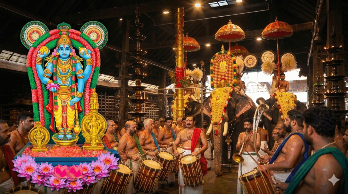 ശ്രീ വൈകുണ്ഠനാഥന്റെ ഭൂലോക സന്നിധിയായ ഗുരുവായൂര് ശ്രീകൃഷ്ണ ക്ഷേത്രം ഉത്സവ ലഹരിയിലായി. സ്വര്ണ്ണപ്പഴുക്കാമണ്ഡപത്തിൽ ദർശനം, സ്വര്ണ്ണക്കോലത്തിൽ എഴുന്നള്ളുന്നത് എന്നിവയാണ് ഇപ്പോഴത്തെ വിശേഷക്കാഴ്ചകൾ.