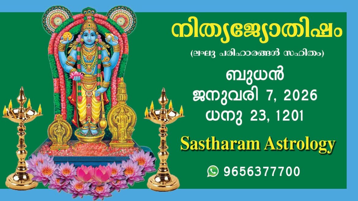 2026 ജനുവരി 07, ബുധൻ കലിദിനം 1872582 കൊല്ലവർഷം 1201 ധനു 23