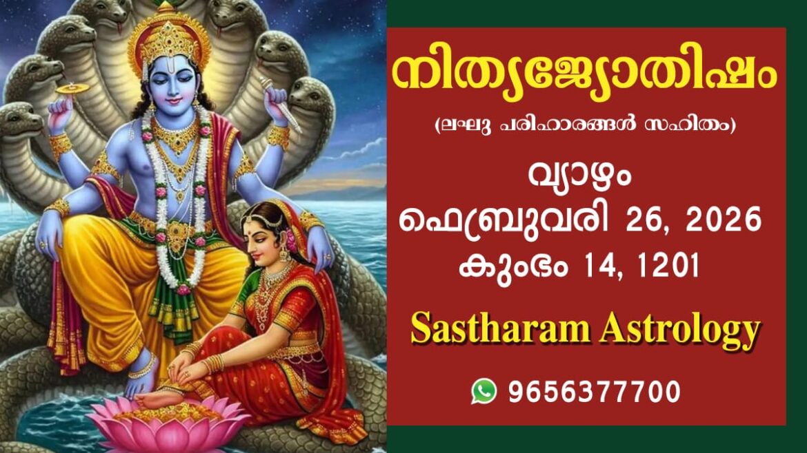 മേടം മുതൽ മീനം വരെ 12 കൂറുകളുടെയും ഇന്നത്തെ രാശി ഫലം | 2026 ഫെബ്രുവരി 26, വ്യാഴം
