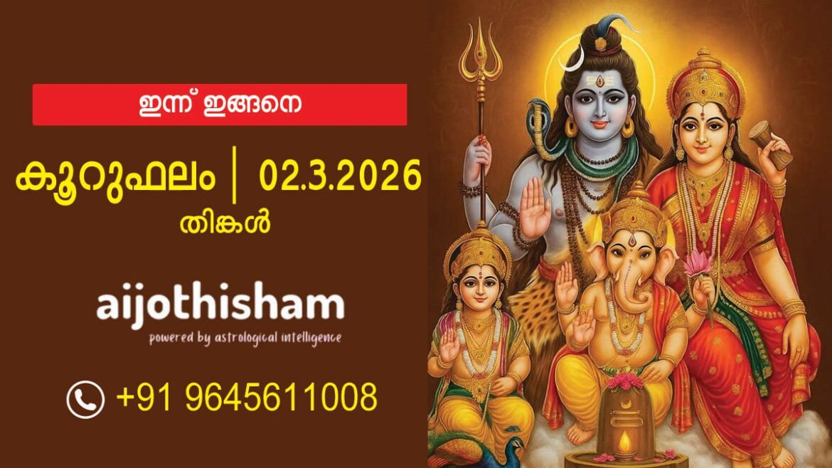 മേടം മുതൽ മീനം വരെ 12 കൂറുകളുടെയും ഇന്നത്തെ രാശി ഫലം | 2026 മാർച്ച് 2, തിങ്കൾ