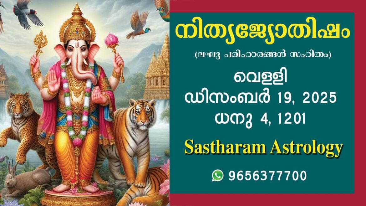 2025 ഡിസംബർ 19, വെള്ളി കലിദിനം 1872562 കൊല്ലവർഷം 1201 ധനു 04