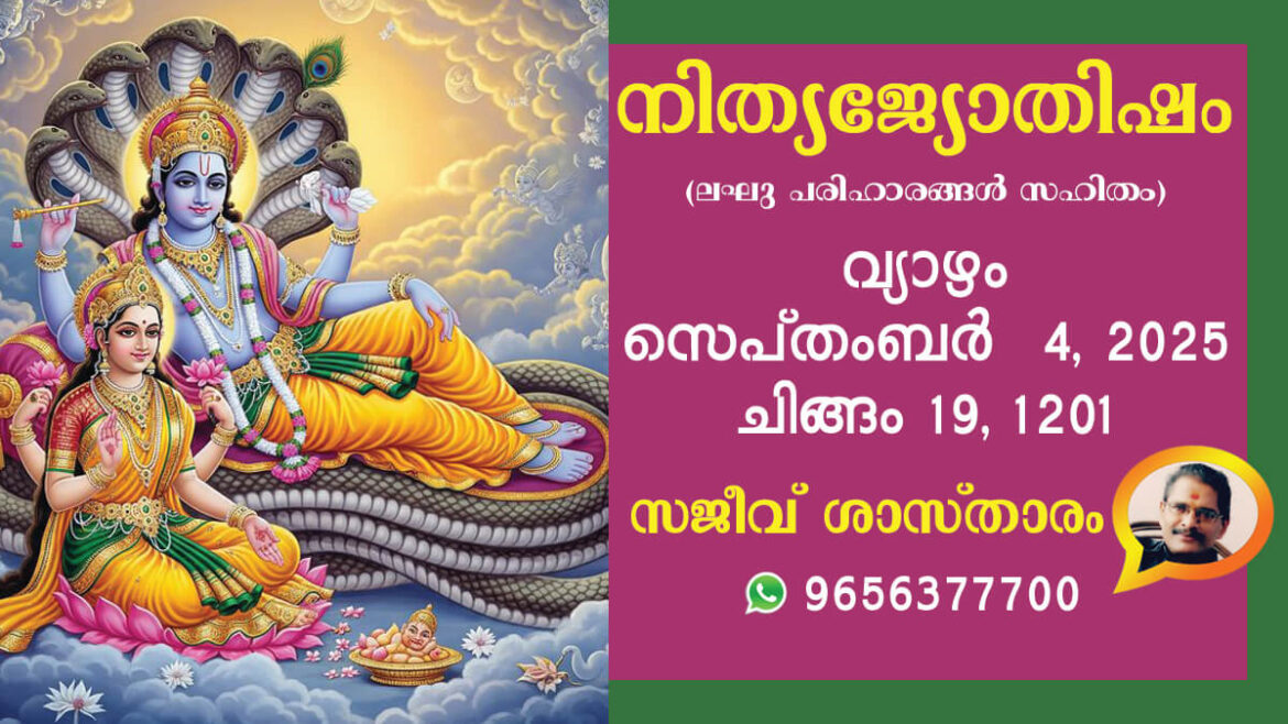 by NeramAdminby NeramAdmin(നിത്യജ്യോതിഷം എന്നും ലഭിക്കാൻ riyoceline.com/projects/Neram/ സന്ദർശിക്കുക. അല്ലെങ്കിൽ ഗൂഗിൾ പ്ലേസ്റ്റോറിൽ നിന്നും AstroG App ഡൗൺലോഡ് ചെയ്യുക.) 2024 ഡിസംബർ 30, …